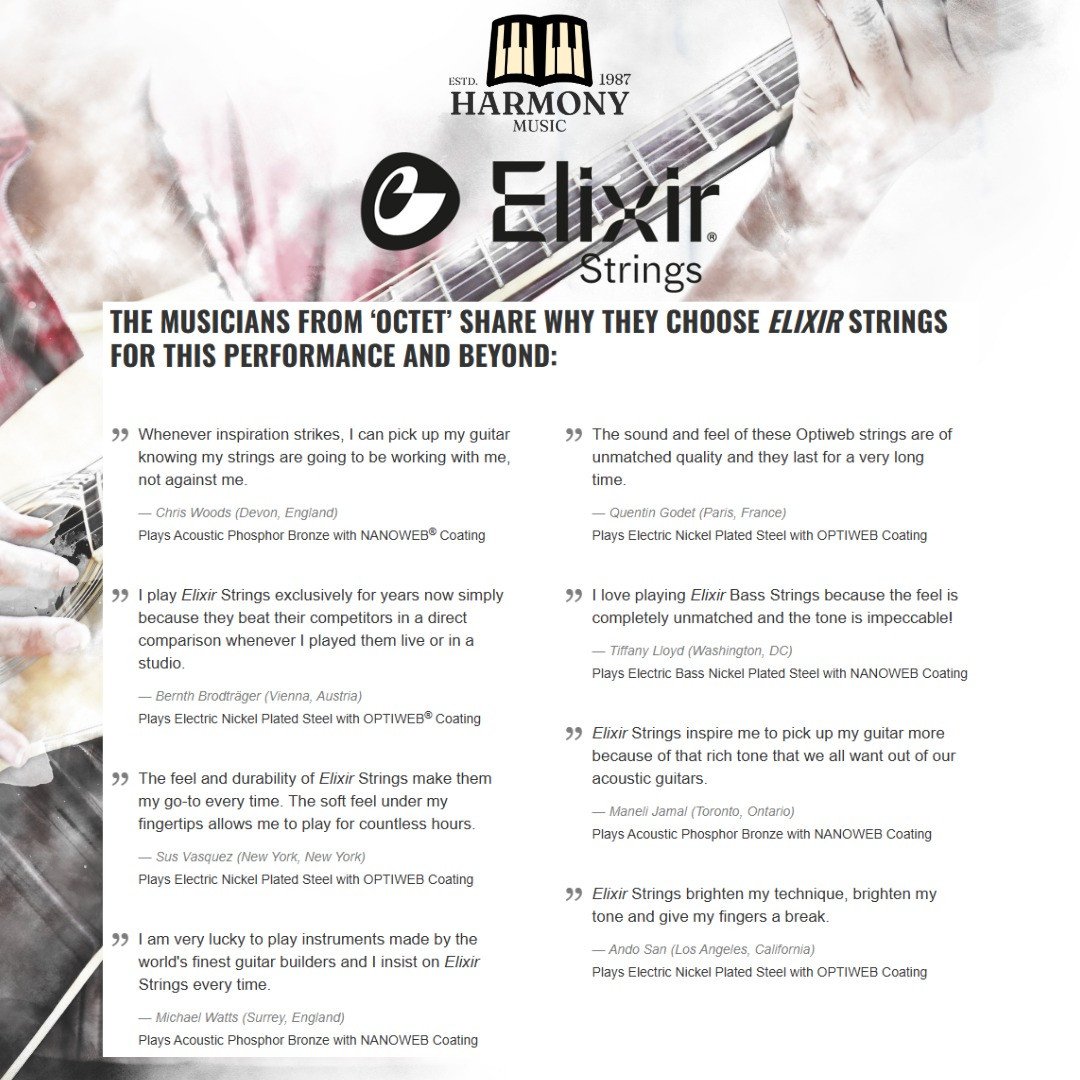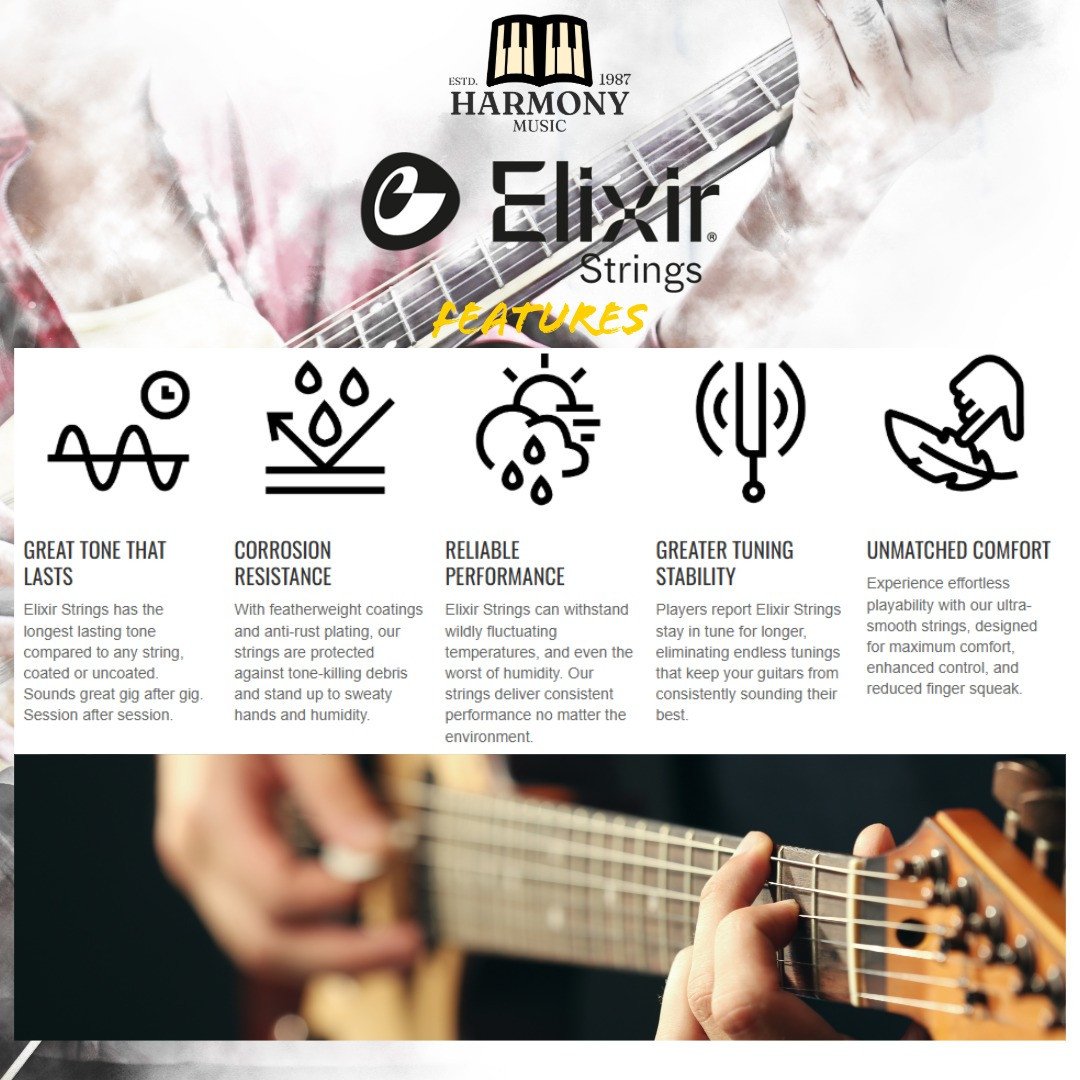 Elixir Nanoweb strings are coated guitar strings designed for extended tone life, with an ultra-thin coating that protects against corrosion and gunk from fingers. They are known for their bright, clear tone and smooth feel, which reduces finger squeak and makes them easy on the fingers. This coating results in a longer-lasting string, meaning fewer changes are needed, and provides consistent performance.